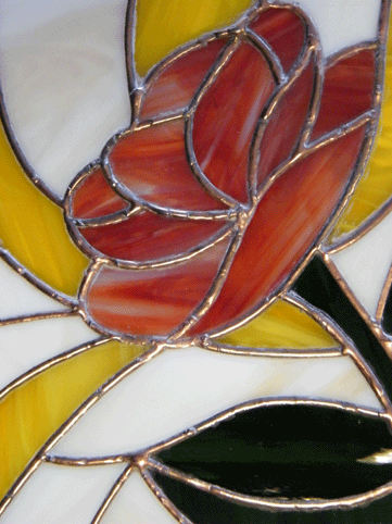 Verre, rouleau de cuivre, plomb, liquide de coupe, patine noir et cuivre, colle fusing, étain, désoxidant cuivre et plomb...